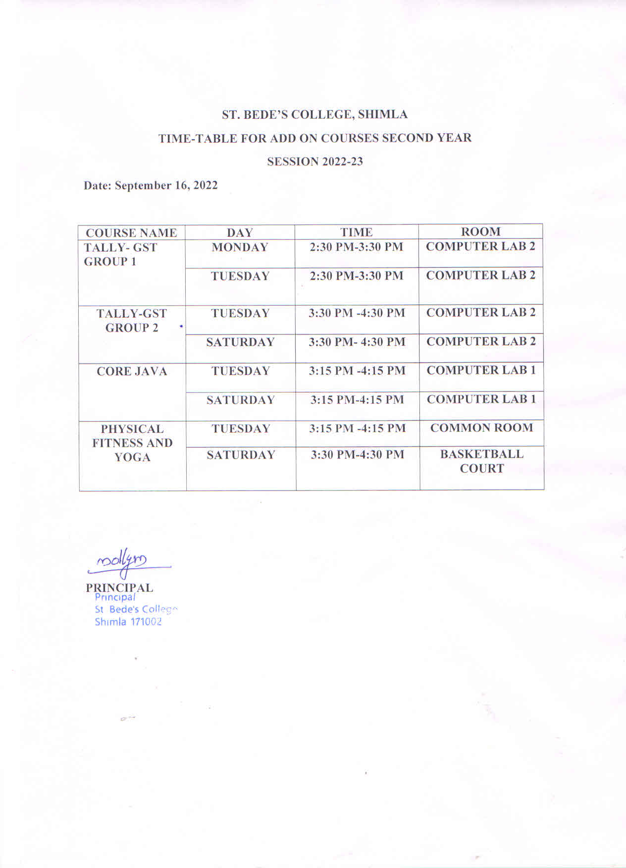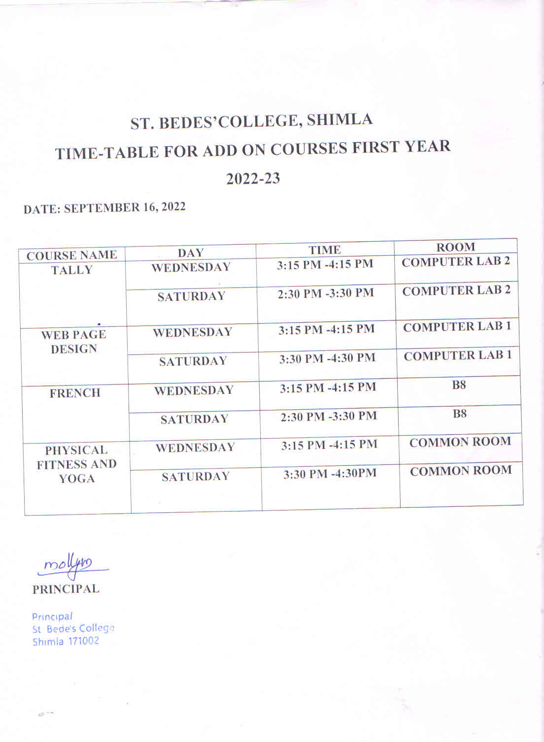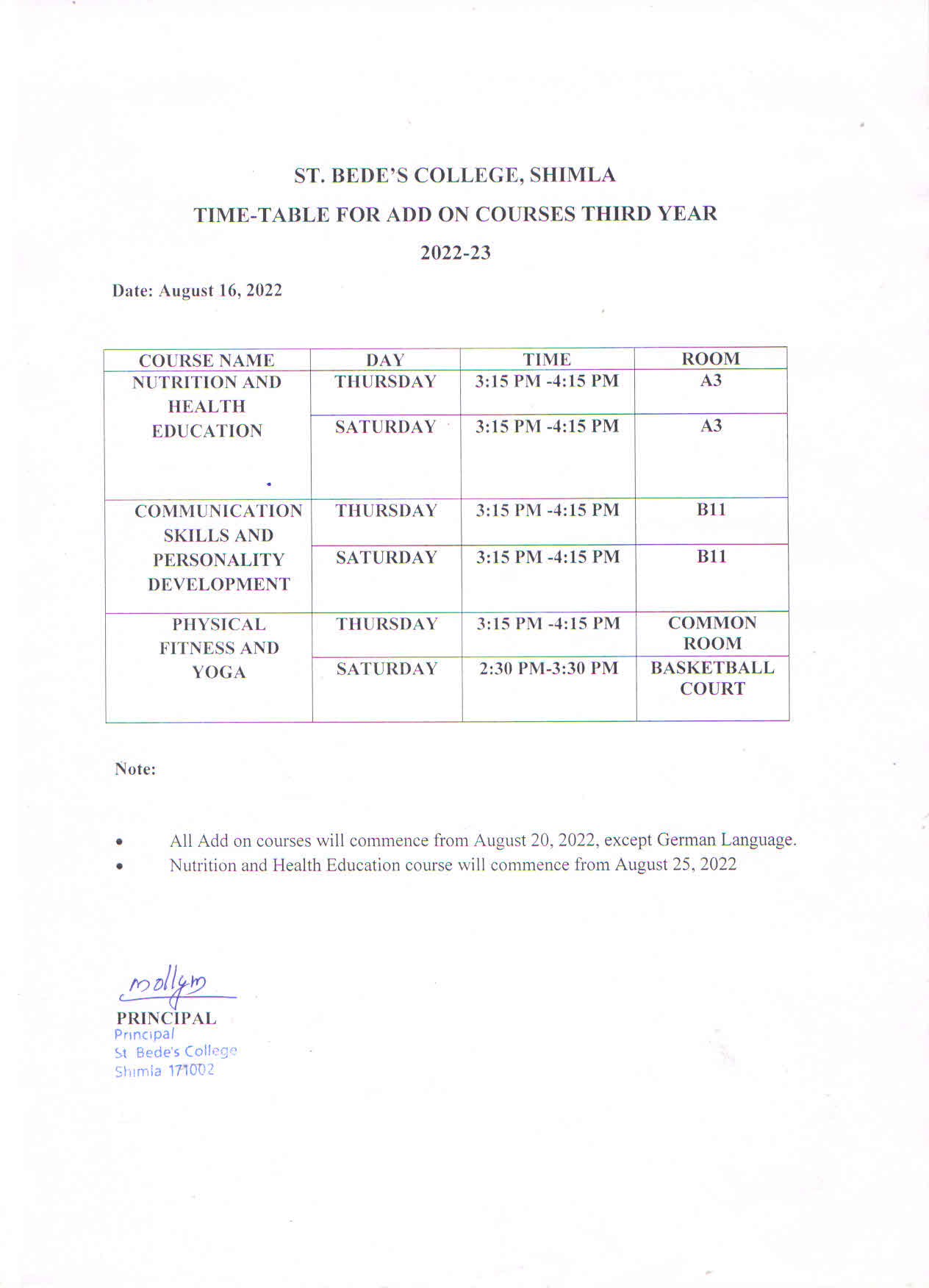| 4 | TIME TABLE (2022-23) |