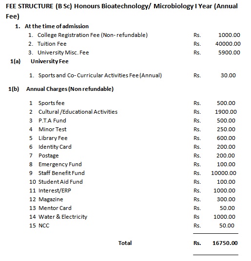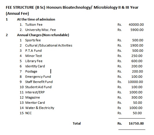 | 5 | B.Sc. Honours (Biotechonology/Microbiology) |