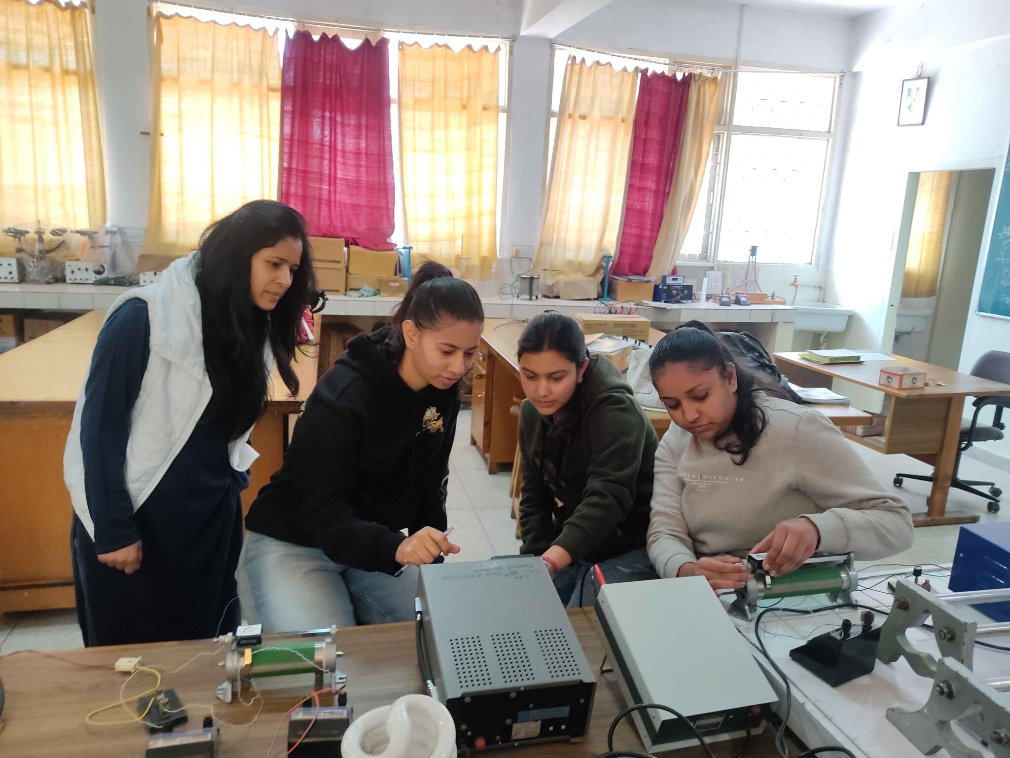 Laboratory is an important medium of instruction in physics. In order to enhance the problem-solving skills and hands-on learning experiences of students’, laboratories become imperative. Physics department has two well equipped traditional labs, one computer lab and two darkrooms. Other than the fundamental equipment like Vernier Callipers, Screw Gauge, Physical Balance, Flywheel, etc there have been special inclusions like: An experimental kit consisting of two experiments, based on diffraction phenomenon and water waves, made for conducting the experimental competition during the 46th International Physics Olympiad (I Ph O) held at Homi Bhabha Centre for Science Education, a National centre of the Tata Institute of Fundamental Research, Mumbai in 2015. A kit to do experiments on basic phenomenon of optics like reflection, refraction, diffraction, scattering etc. Apparatus for doing a classical experiment to find the charge of an electron, for which Robert Millikan got the Nobel prize: Millikan’s Oil Drop Apparatus. The advanced model of the apparatus has an LCD display to eliminate eye fatigue and many more features.