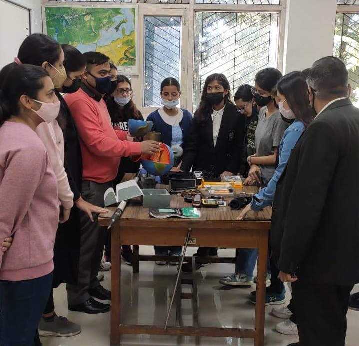 College enables students with first-class experiences on infrastructure and technology that align and expose students to constantly changing advancements in the field of geography. Geography Lab in the College was established in 2019 and is equipped with all basic and modern equipments such as Smart Board, Computers, Electric globes, GPS, Anemometer, models, charts and maps etc