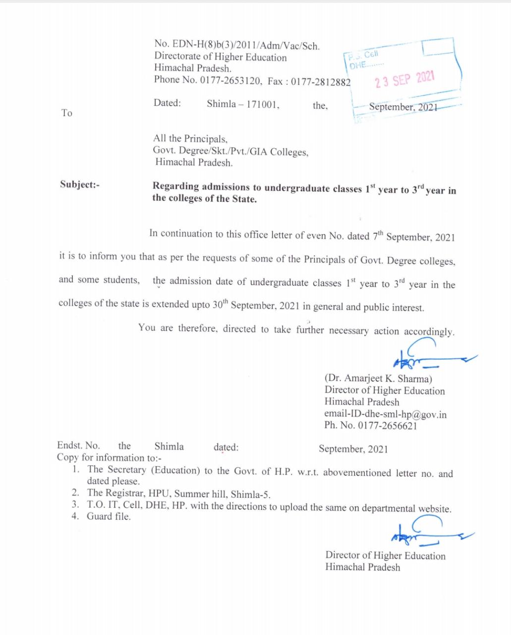 Extension of admissions and commencement of 2nd & 3rd year online classes notice