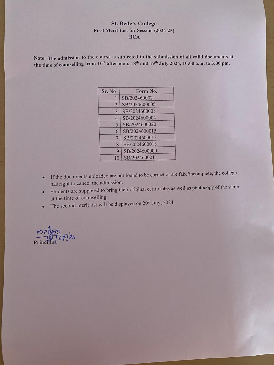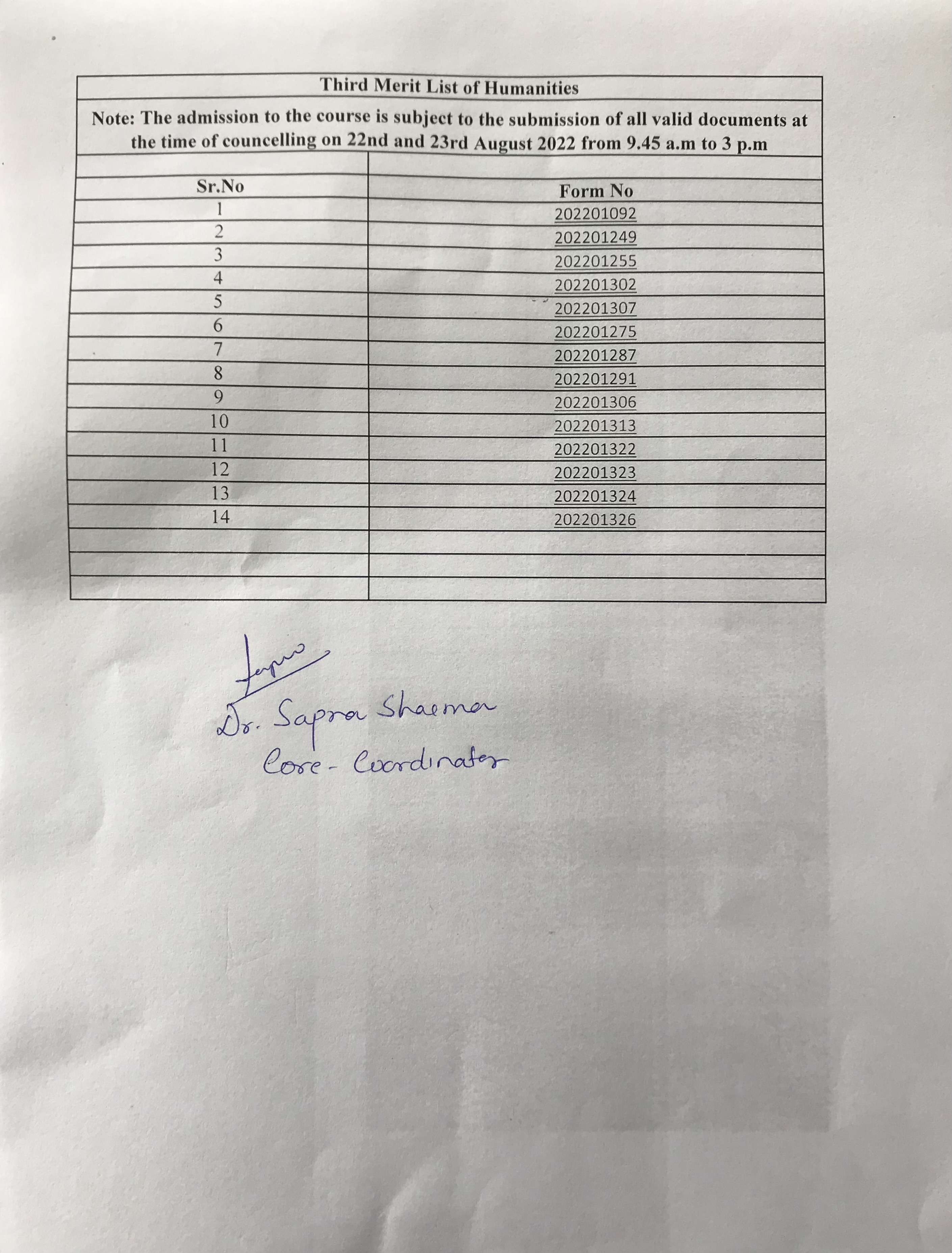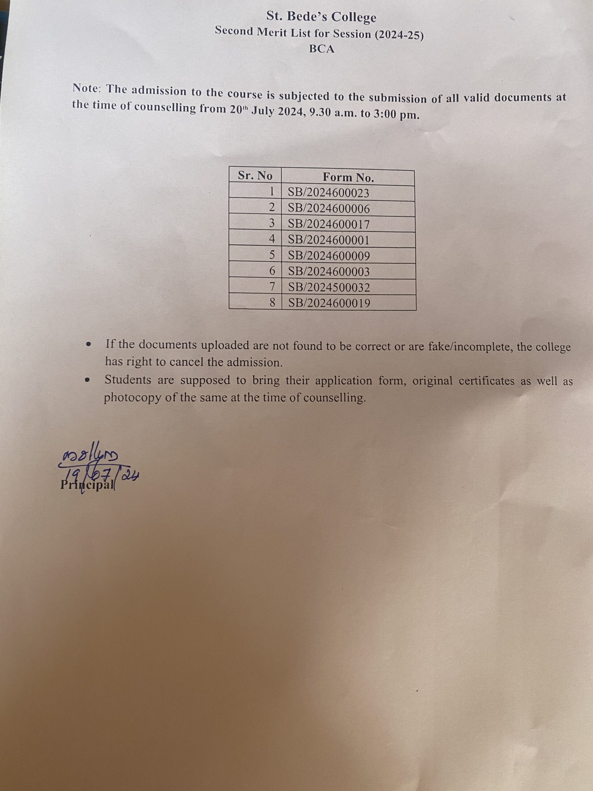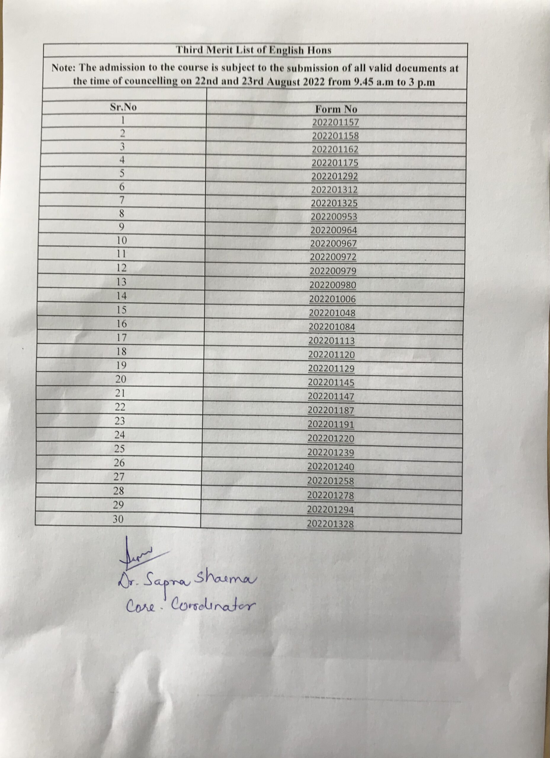 B.Sc. (Hons.) Biotechnology 1st Year Second Merit List(2024-25)